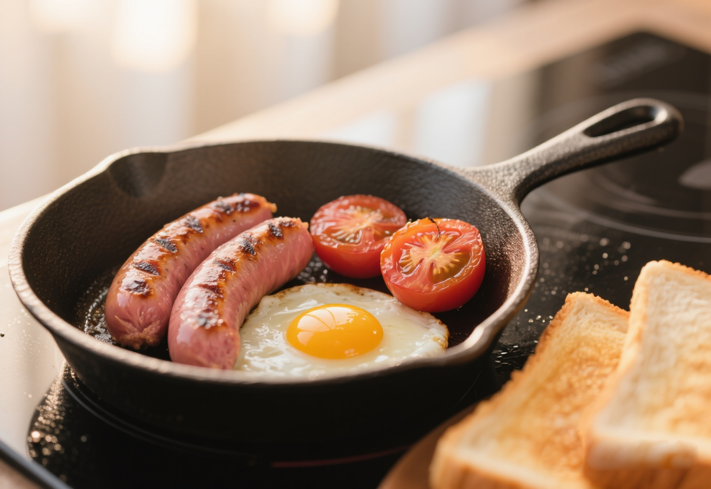 特點(diǎn):充分激發(fā)牛肉腸的焦香風(fēng)味,搭配太陽蛋和烤番茄,打造營(yíng)養(yǎng)均衡的經(jīng)典西式早餐。