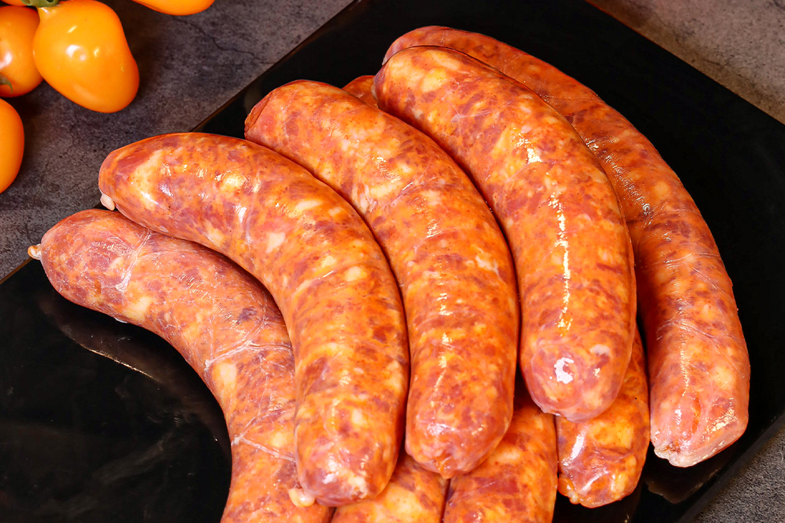 主要配料:豬肉、水、食用鹽、黑胡椒、香辛料、天然腸衣、食品添加劑等