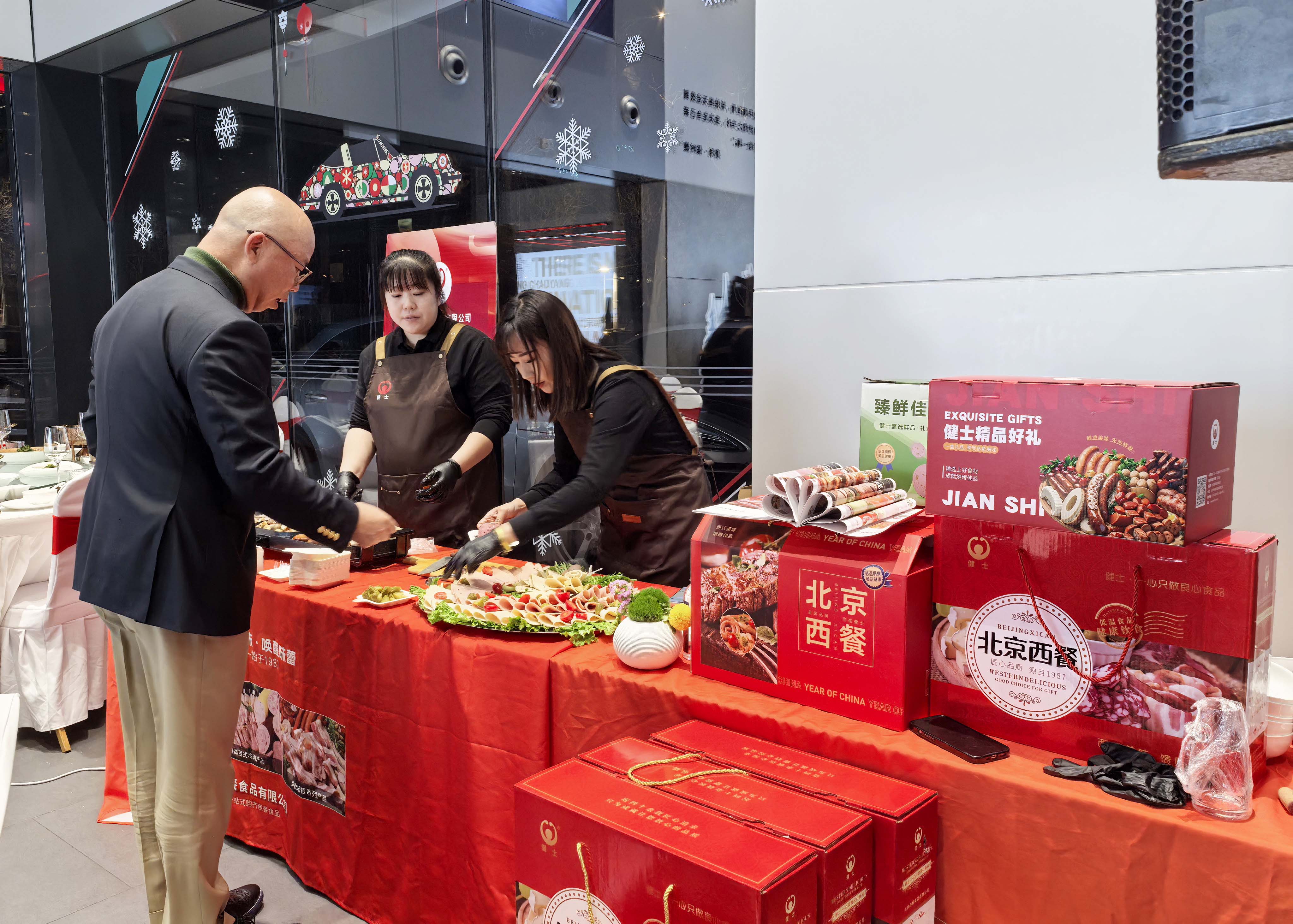 北京西餐團(tuán)隊(duì)攜帶經(jīng)典明星產(chǎn)品亮相,現(xiàn)場(chǎng)現(xiàn)制美味,讓晚宴的餐桌更具儀式感與煙火氣。除此之外,我們還特意帶來(lái)了2025年度主推的新年禮盒,精致的包裝、豐富的品類(lèi),成為晚宴現(xiàn)場(chǎng)的一大亮點(diǎn),贏得了現(xiàn)場(chǎng)嘉賓的廣泛關(guān)注與喜愛(ài)。