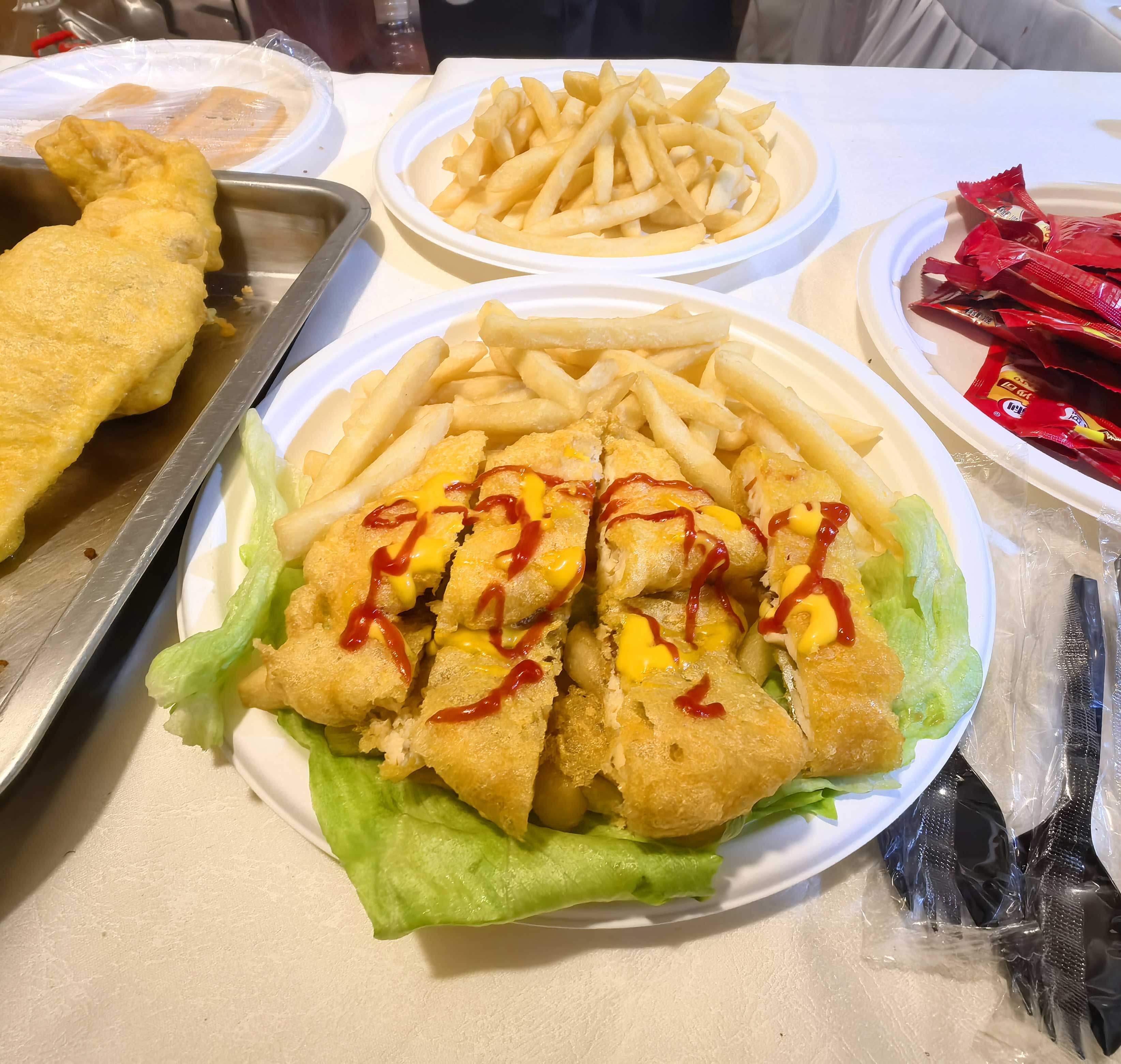◎魚柳薯?xiàng)l,外酥里嫩的魚柳搭配上金黃酥脆的薯?xiàng)l,魚柳的鮮美和薯?xiàng)l的香酥完美結(jié)合,再蘸上特制的醬料,味道簡直絕了。
