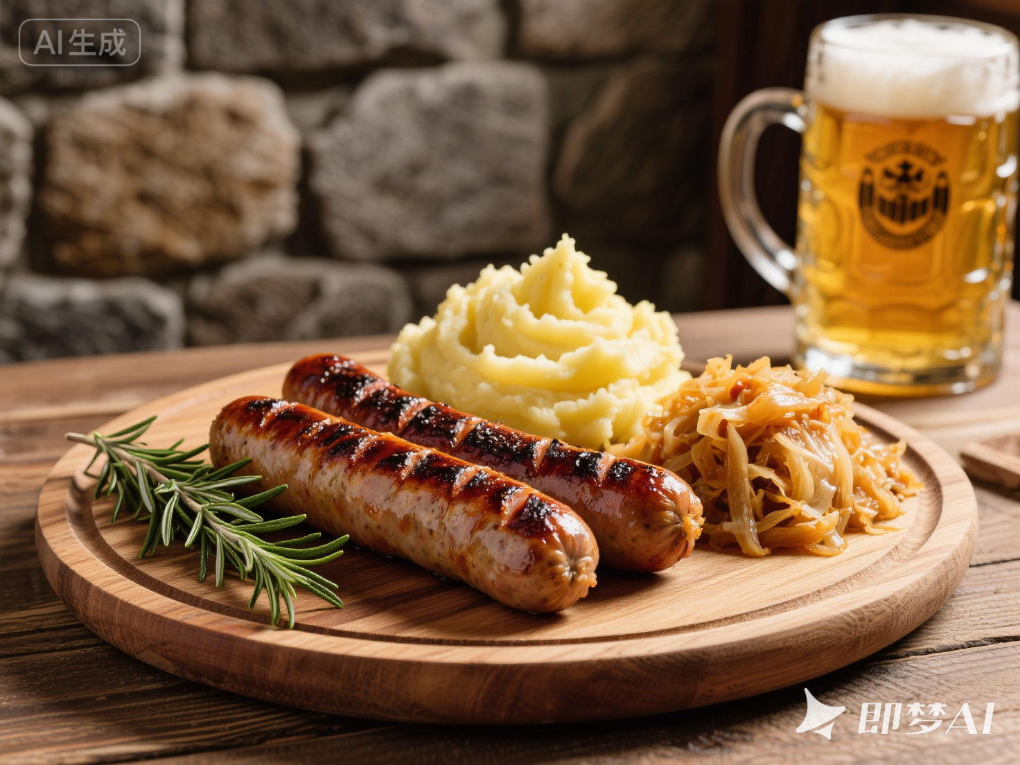 烤腸外皮焦脆,黑胡椒香氣濃郁,搭配酸菜與土豆泥,重現(xiàn)地道德式風(fēng)味。