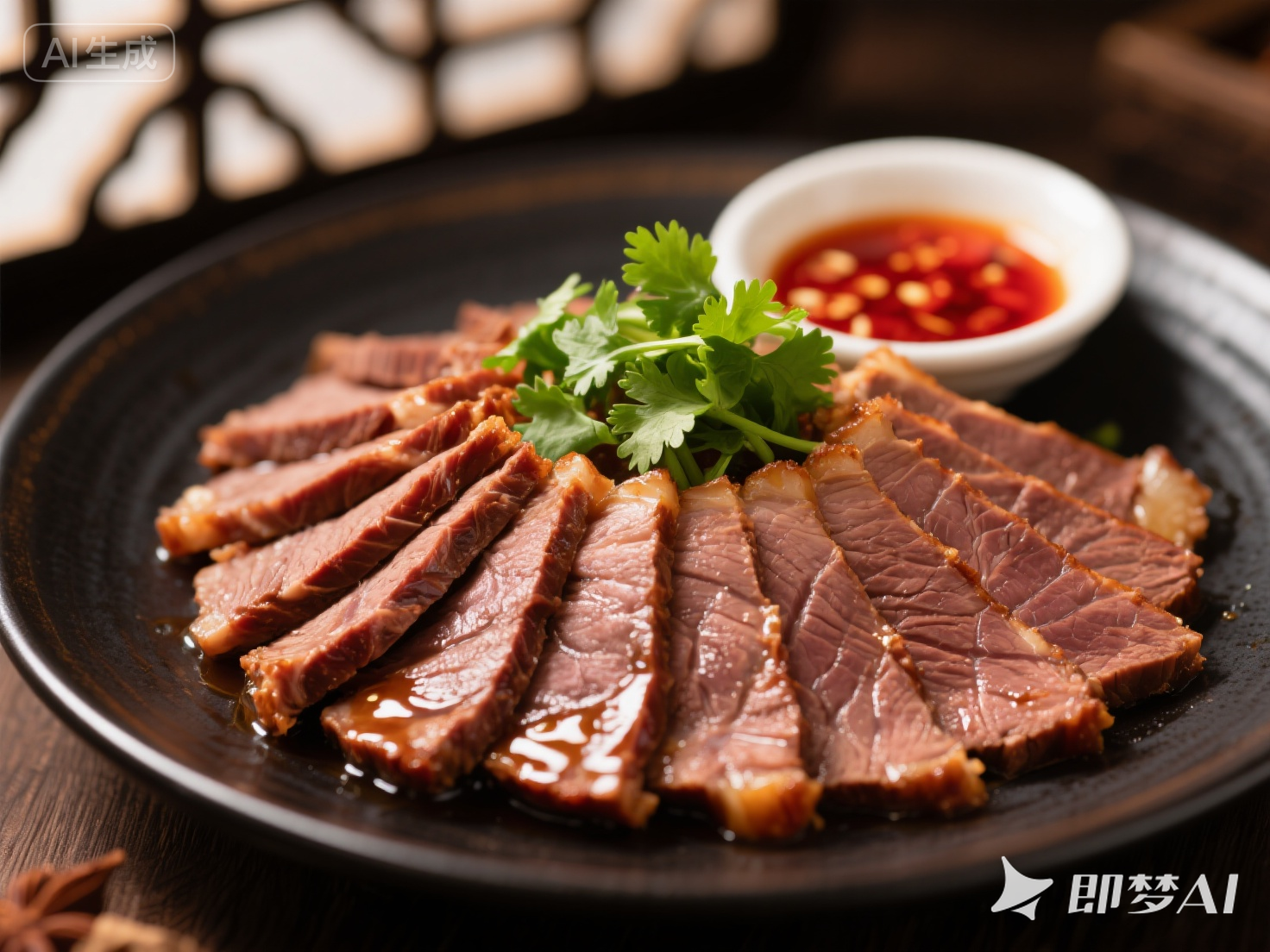 ① 切片:將醬牛肉從包裝中取出,逆著牛肉的紋理切成薄厚均勻的片狀(約2-3毫米厚);