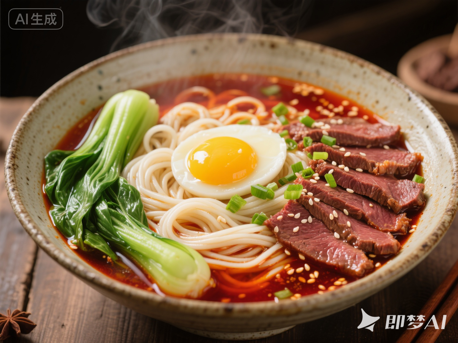 將冷食的醬牛肉轉(zhuǎn)化為一碗熱氣騰騰的湯面主角,醬牛肉的鹵香融入湯中,風味升華。